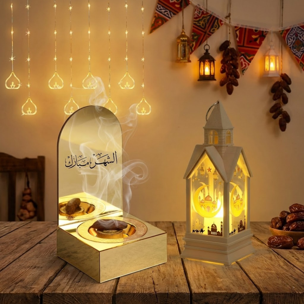بكجات رمضان هو سر الأجواء الرمضانية الساحرة في بيتك. جمعنا لك فيه أهم قطع الديكور اللي تنقل بيتك لمستوى ثاني من الجمال والهدوء، من إضاءة الستائر اللي تفتح النفس، للفوانيس الكلاسيكية، ومباخر الأكريليك الفخمة، عشان تستقبل ضيوفك وشهرك بأبهى صورة.