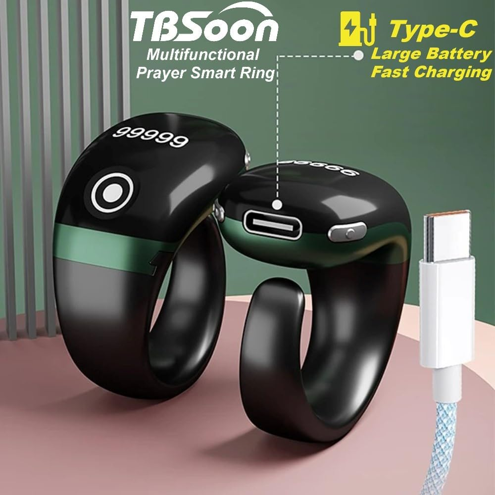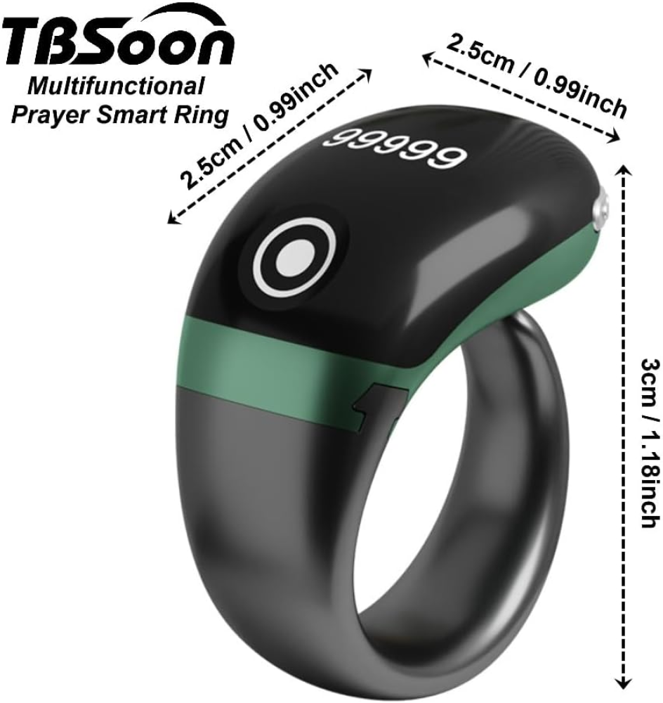 خاتم تسبيح ذكي من TBSoon يتميز بوزنه الخفيف جداً وتصميمه المريح للاستخدام اليومي، مزود بشاشة OLED تعرض لك عدد التسبيحات ومستوى البطارية بوضوح. يجمع بين البساطة والتقنية ليكون رفيقك الدائم في ذكر الله ومتابعة أورادك اليومية.